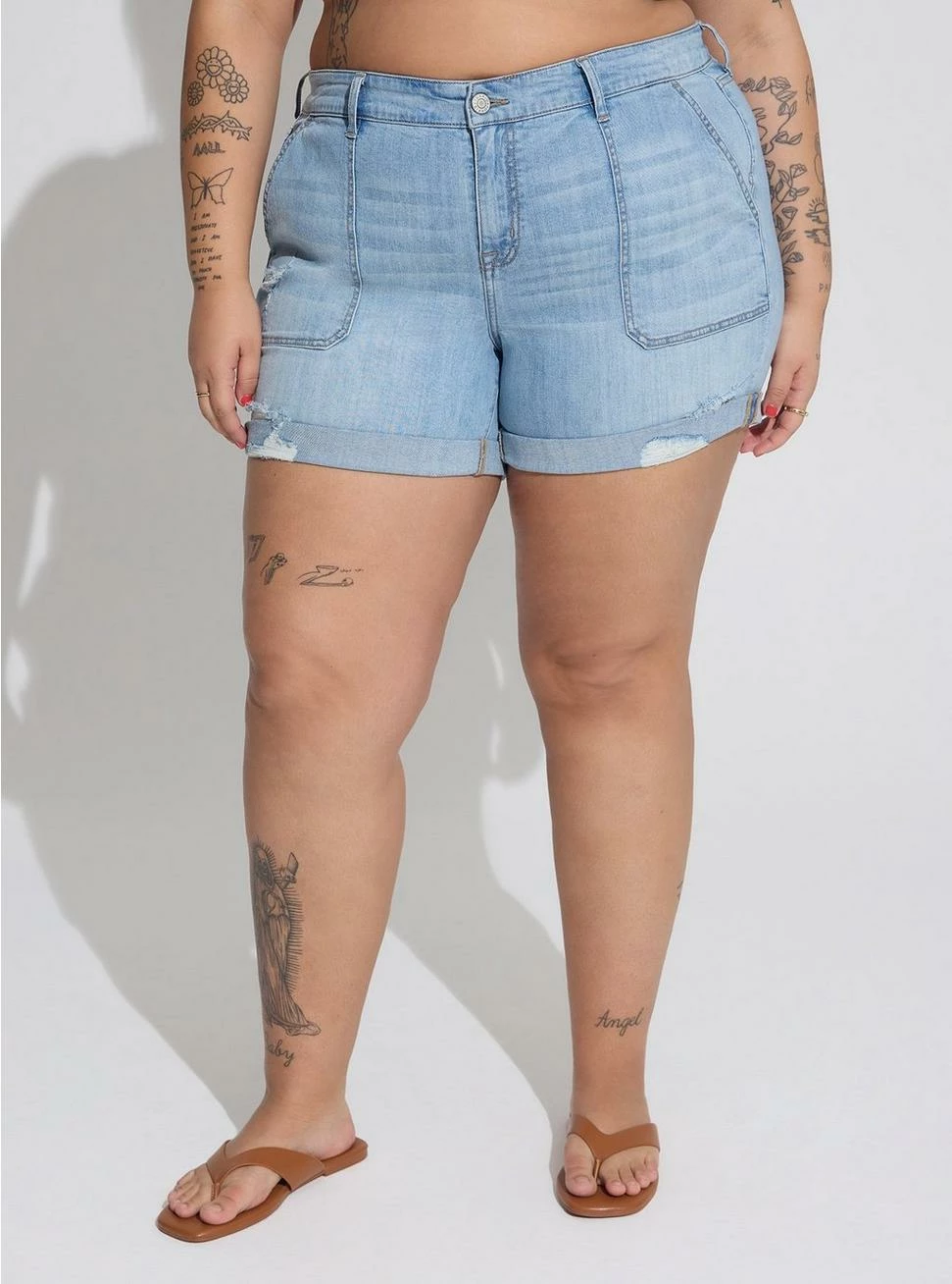 - Frayed and cuffed hem