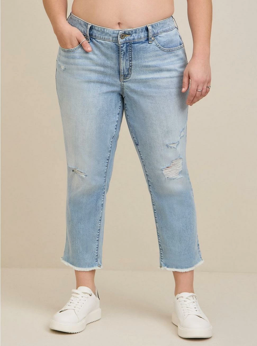 - Slim fit from hip to thighs, relaxed from knee down.