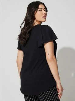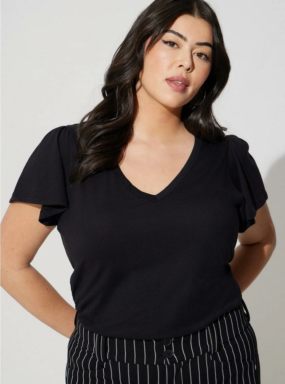 - Short flutter sleeves.
