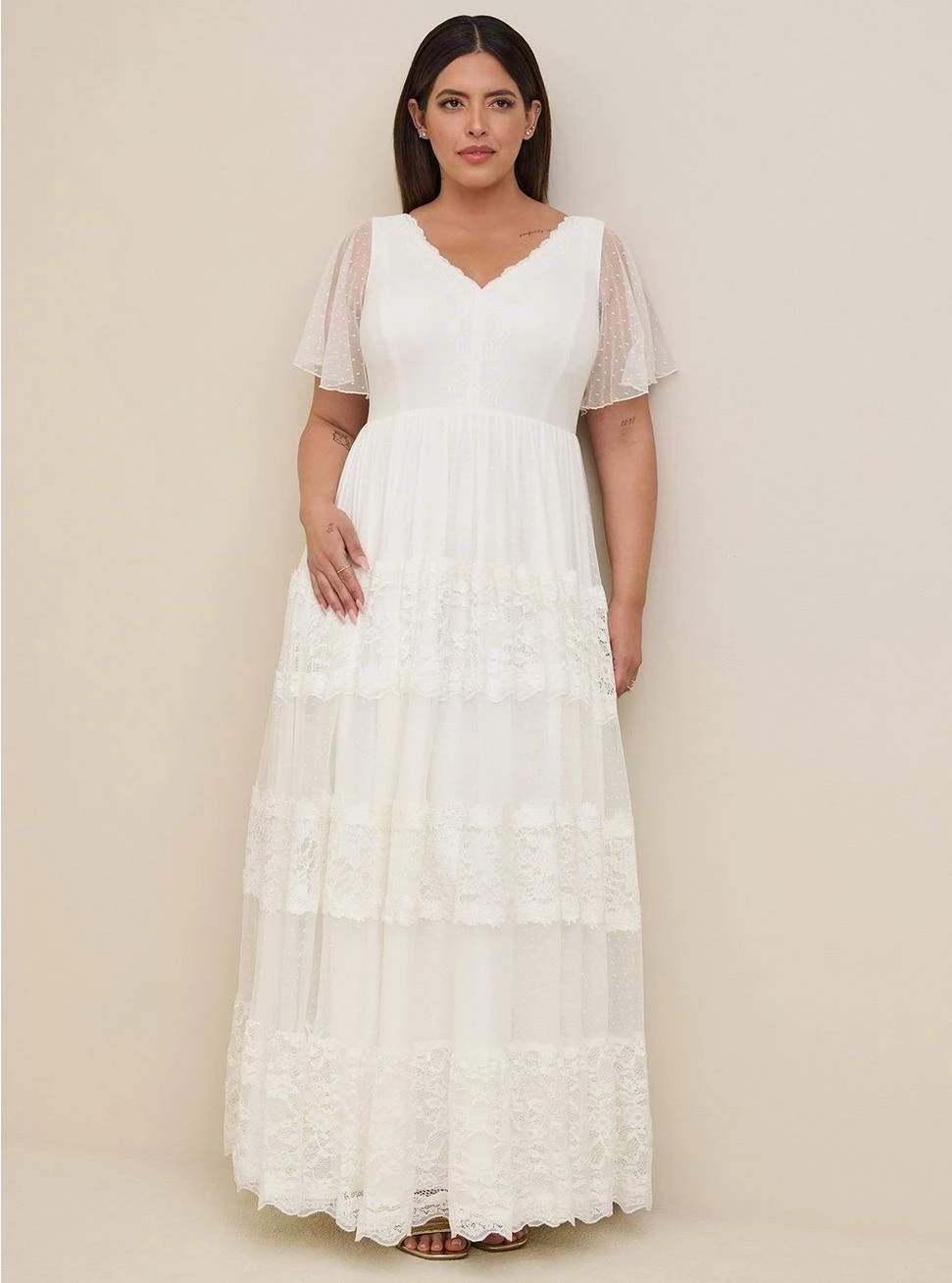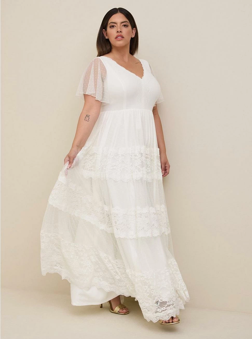 Calling all you desert princesses, bohemian beach beauties, and mountain top queens! Nothing is more chic than a beautiful lace and Swiss-dot gown, and if boho is your style then we can guarantee this wedding dress from our Ever After collection will be the dress of your dreams.