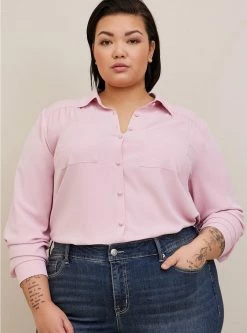 - Studio Crepe de Chine woven fabric: A travel-ready, drapey fabric with a luxurious feel and a light sheen—your polished look is as easy as wash, wear and go. Â