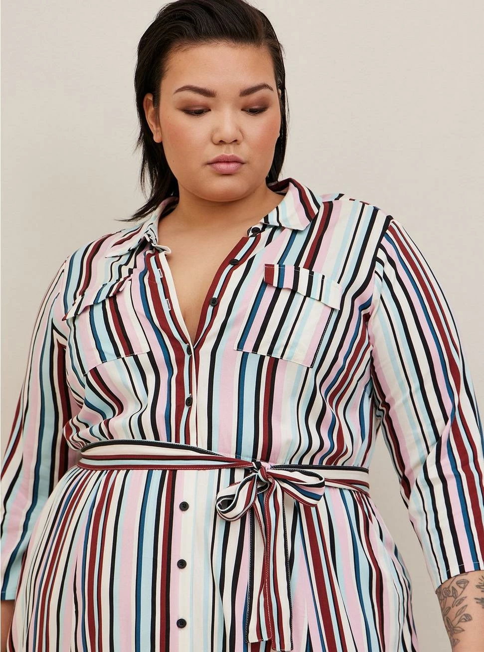 - Stretch challis woven fabric: Your favorite easy-but-polished fabric with the perfect touch of stretch.