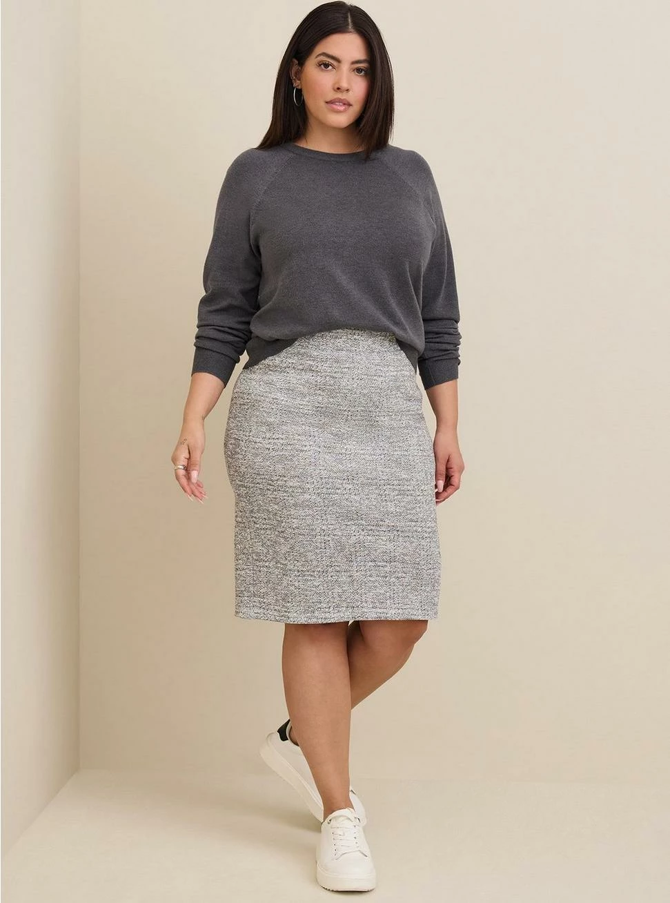 - Studio Double Knit fabric: A textured bouclé fabric with the elevated look of business suiting but the feel of your favorite tracksuit. Perfect for year-round style.