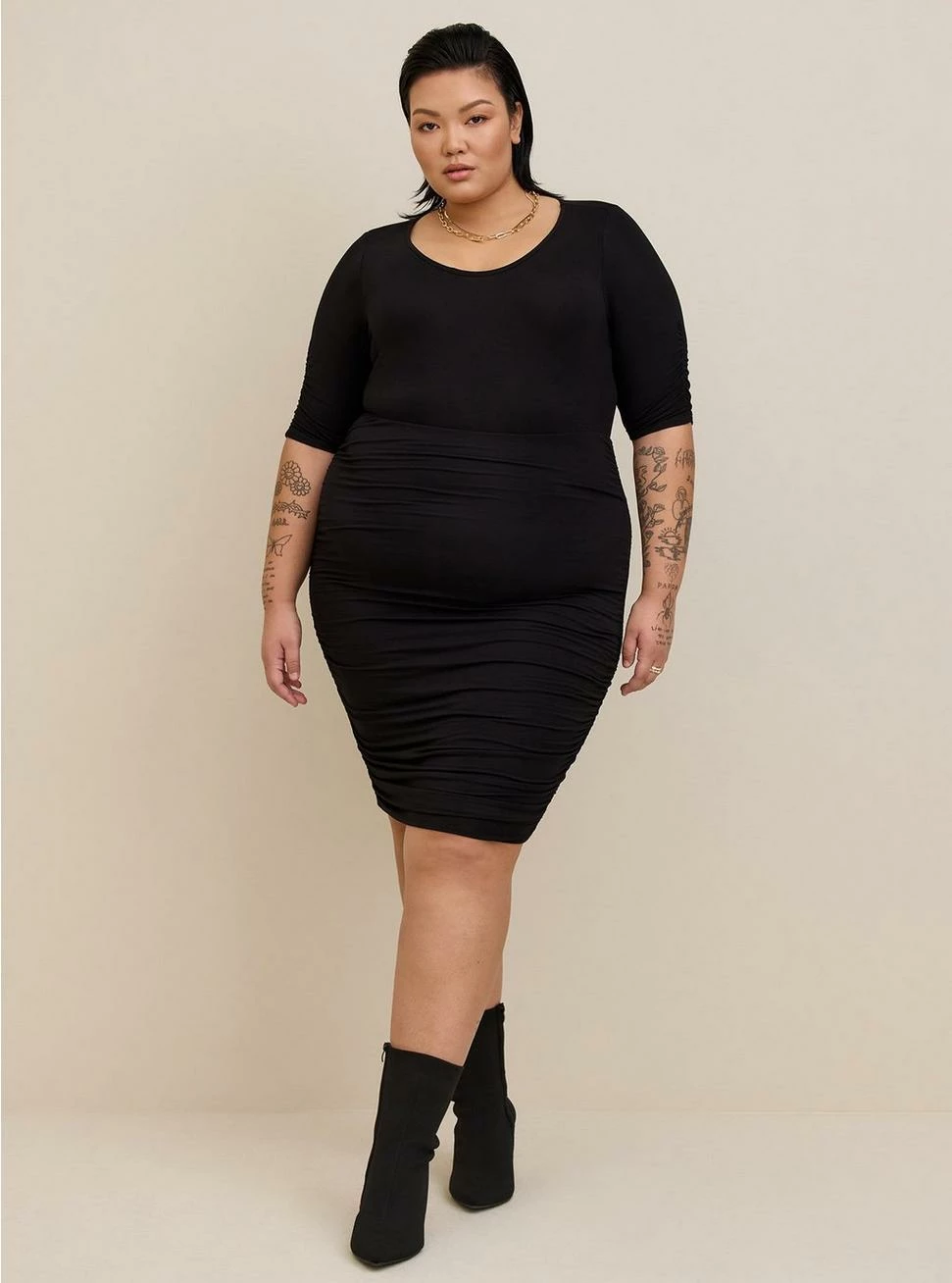 - Super Soft knit fabric: An incredibly soft, versatile knit that hugs close to the body.