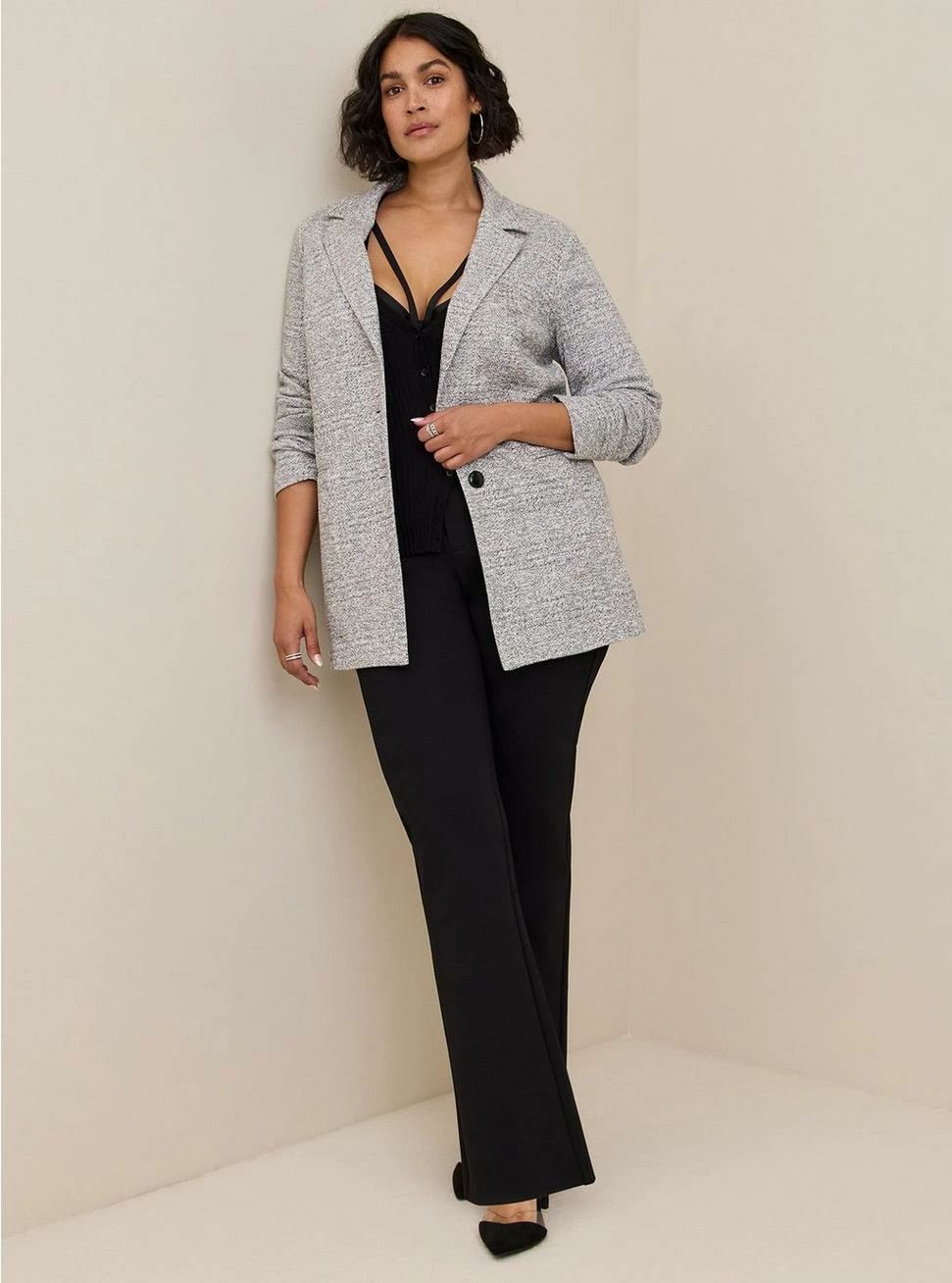 - Studio Double Knit fabric: A textured bouclé fabric with the elevated look of business suiting but the feel of your favorite tracksuit. Perfect for year-round style.