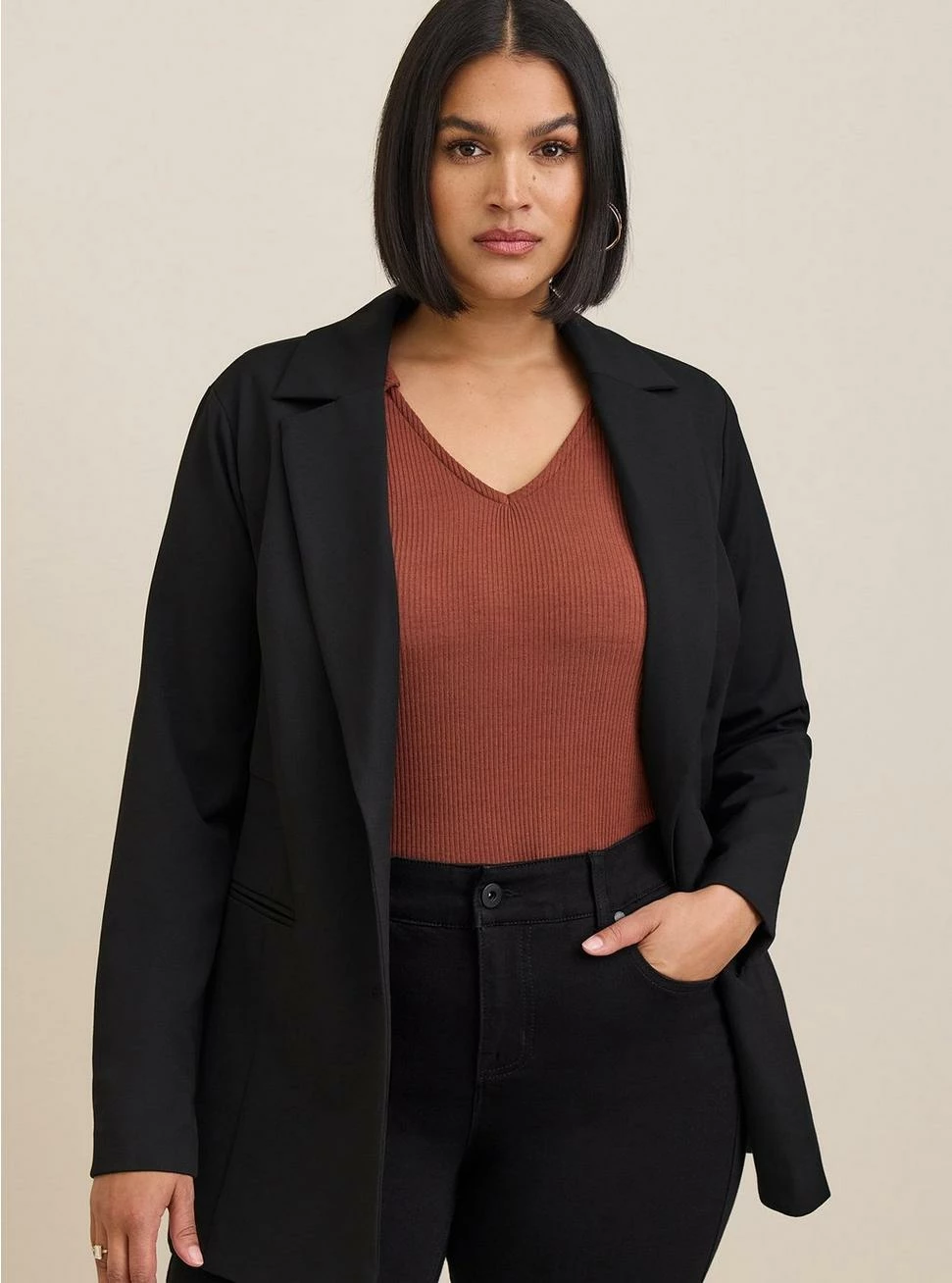 - Studio Luxe Woven fabric: An ultra soft, luxurious suiting fabric with a tailored drape and a hint of stretch for comfort and ease. Â