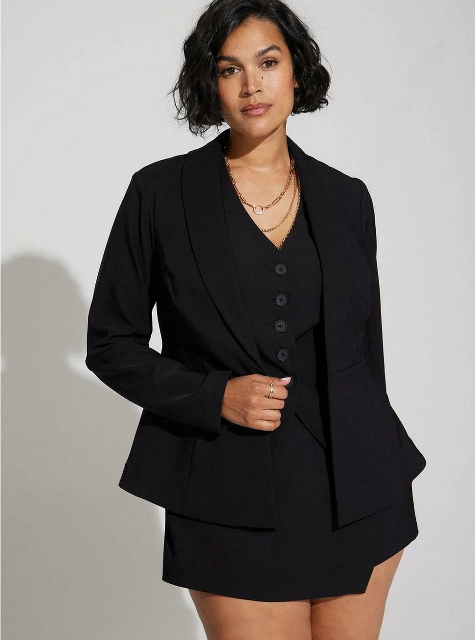 - Studio Refined Crepe woven fabric: Say hello to lightweight luxury—perfect stretch, wrinkle resistance and style that suits you just right.Â