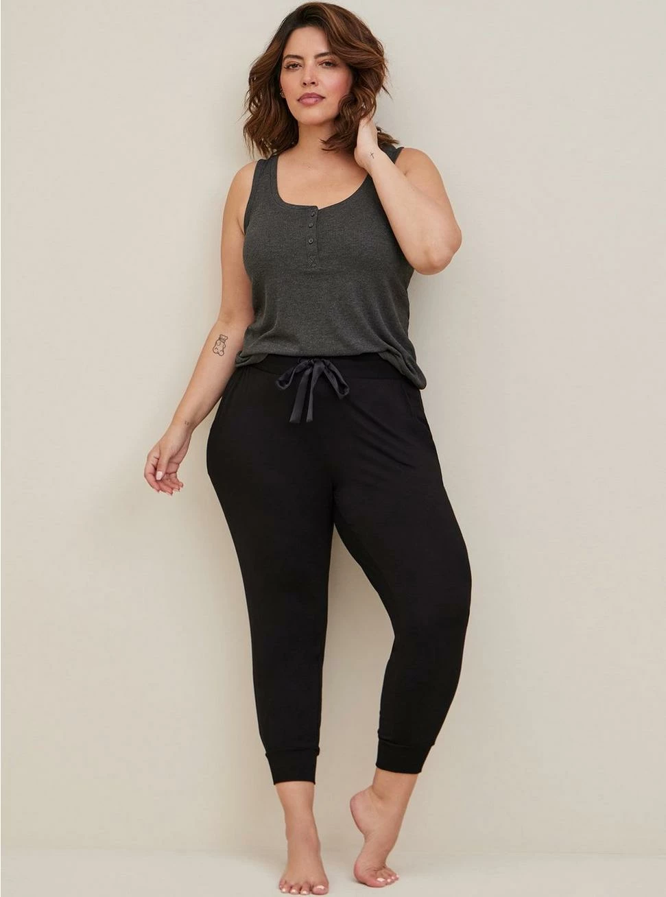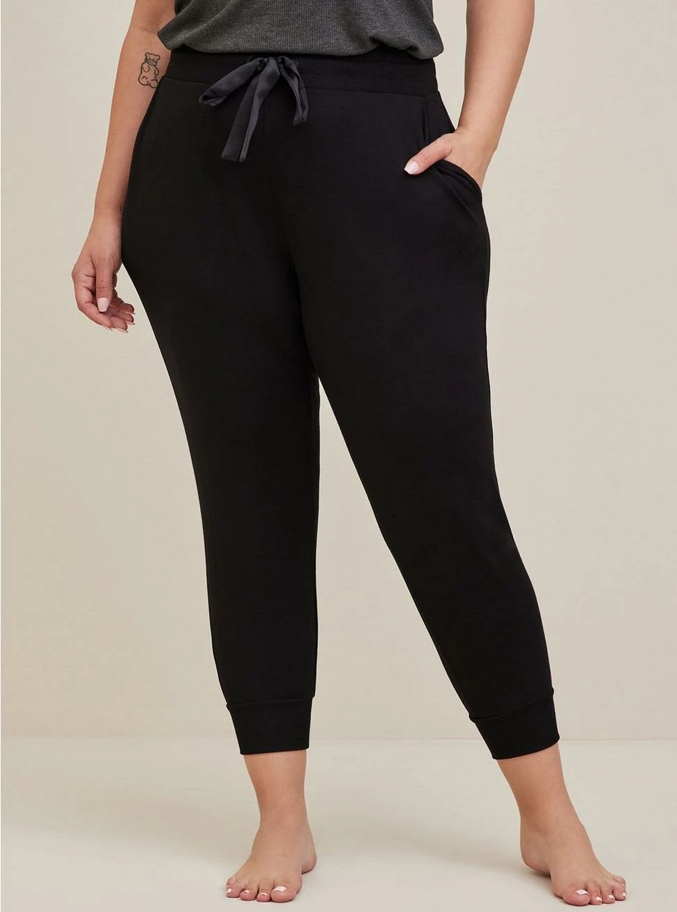 This pair of Super Soft cropped sleep joggers has a classic fit, ribbed cuffs, a drawstring waist, and functional pockets!Â